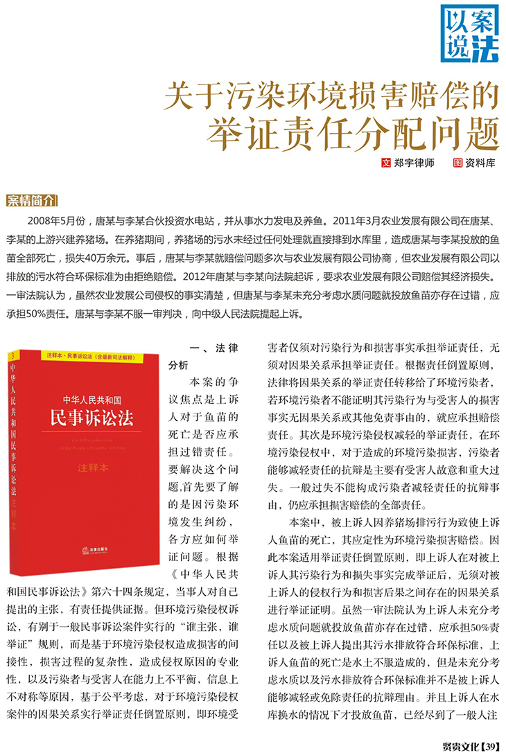关于污染环境损害赔偿的举证责任分配问题
